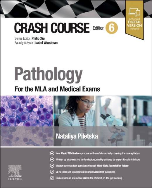A winning formula now for over 25 years, having sold over 1 million copies and translated in over 8 languages, each series volume has been fine-tuned and fully updated to make your life easier. Especially written by senior students or junior doctors/residents - those who understand what is essential for exam success - with all information thoroughly checked and quality assured by expert Faculty Advisers, the result is books that exactly meet your needs and you know you can trust. Each chapter guides you succinctly through the full range of curriculum topics in the MLA syllabus, integrating clinical considerations with the relevant basic science and avoiding unnecessary or confusing detail. Text boxes help you get to the hints, tips and key points you need fast! A fully revised self-assessment section matching the latest exam formats is included to check your understanding and aid exam preparation. The accompanying enhanced, downloadable eBook completes this invaluable learning package. Series volumes have been honed to meet the requirements of today's medical students, although the range of other health students and professionals who need rapid access to the essentials of pathology will also love the unique approach of Crash Course. Whether you need to get out of a fix or aim for a distinction Crash Course is for you! This fully updated edition is fully aligned with the MLA syllabus, offers a cutting-edge learning experience. Featuring brand new updated questions and vivid colour photographs, it showcases both microscopic and macroscopic pathological disease processes. With the addition of patient photographs illustrating various common disease manifestations, this resource provides an invaluable visual guide for students and professionals, enhancing understanding of pathological concepts and their clinical presentations.