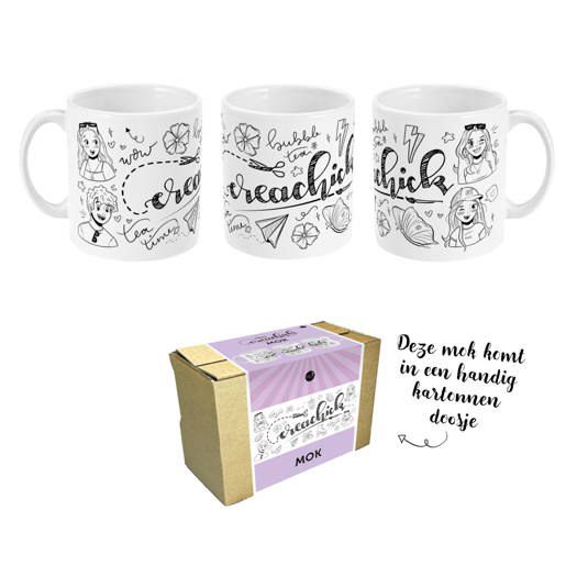 Deze CreaChick-mok is dé musthave voor ieder CreaChickie! Of je nu bezig bent met tekenen, bulletjournalen of gewoon lekker chillt met een warme chocolademelk op de bank, deze mok maakt het extra gezellig. Met toffe doedels en een vrolijke uitstraling past hij perfect bij jouw creatieve vibe. Hij is stevig, vaatwasserbestendig en mag gewoon in de magnetron - super handig! Of je hem nu gebruikt tijdens het tekenen of voor een relaxmomentje, de CreaChick-mok zorgt altijd voor een dosis inspiratie. Perfect als cadeau of gewoon voor jezelf.