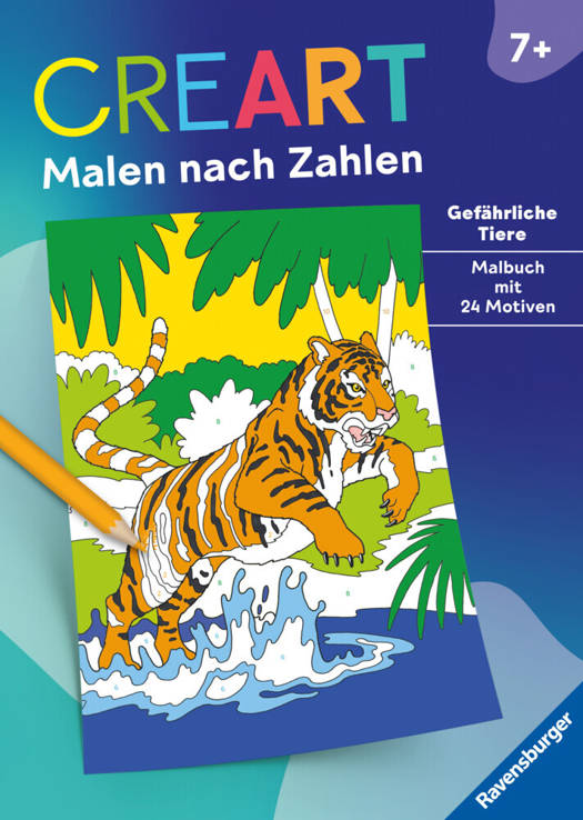Die Ravensburger Erfolgsreihe CreArt - Malen nach Zahlen macht Malen zum Kinderspiel: Alle Ausmalfelder enthalten Zahlen, die die Farben vorgeben. Feld für Feld entstehen so ansprechende, detailreiche Bilder. Kinder malen erfolgreich auch anspruchsvolle Motive, wie Dinosaurier oder Pferde. Die Malbuch-Reihe enthält Angebote für drei Altersstufen: ab 3 Jahren, ab 5 Jahren und ab 7 Jahren. Je nach Alter variiert die Größe der Malflächen. Sehr kleine Flächen sind vorgefärbt. Die Farbe der Zahlen erleichtert Vorschulkindern die Zuordnung. So können die Kinder ganz nebenbei die Zahlen lernen. CreArt - Malen nach Zahlen gibt es auch mit Überraschungseffekt. In Heften mit Zauberpapier werden beim Ausmalen zusätzlich versteckte Details sichtbar. Das ist magisch und motiviert zum Fertigmalen. CreArt ist Malspaß mit Erfolgsgarantie und ein perfektes Geschenk für Mädchen und Jungen.