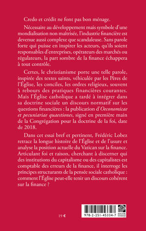 Dans cet essai bref et pertinent, Frédéric Lobez retrace la longue histoire de l’Église et de l’usure et analyse la position actuelle du Vatican sur la finance. Articulant foi et raison, cherchant à discerner qui des institutions du capitalisme ou des capitalistes est comptable des erreurs de la finance, il interroge les principes structurants de la pensée sociale catholique : comment l’Église peut-elle tenir un discours cohérent sur la finance ?