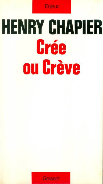 Voici un livre de colère, d'audace, de combat, mais aussi d'espoir. Radiographie de la République des Lettres, des Arts et du Spectacle, il nous mène dans le dédale de ses mystères, de ses impostures, et de ses splendeurs. Derrière un titre délibérément provocant, l'auteur fustige d'abord la prétention des milieux officiels à régenter un talent auquel ils n'entendent rien. Il se demande pourquoi les gestionnaires de l'esprit sont à ce point tournés vers le passé qu'ils n'aperçoivent même pas les signes avant-coureurs de la révolution qui s'accomplit pourtant, silencieusement, sous leurs yeux. Oui, Crée ou crève: car devant le défi de la nouvelle culture, des radios libres, ou de la civilisation de l'image, c'est à l'opinion publique tout entière que Chapier lance son défi, - où il va de l'essentiel.