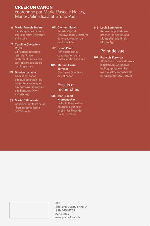 La canonisation de textes littéraires, juridiques, historiques ou sacrés, met en évidence des processus intellectuels communs aux mondes musulman et chrétien médiévaux, comme la lente sélection par l’usage, la référence aux Anciens, la composition en corpus ou en bibliothèque. Elle montre que le renvoi à une autorité extérieure – pouvoir politique, maître religieux ou école – vient après coup donner un visage à ce qui a commencé par être un travail plus souterrain de lecture et de réception communautaire.