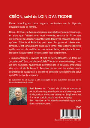 Dans « Créon », le tyran exemplaire qu'est devenu ce personnage, et alors que l'attend une mort violente, retrace le fil de son existence et ses rapports conflictuels, tant avec Jocaste et OEdipe qu'avec Étéocle et Polynice, puis avec Antigone et même avec Ismène. C'est longuement aussi qu'il tente, face à leurs spectres qui le hantent, de justifier sa conduite et la façon implacable avec laquelle il a gouverné Thèbes après leur disparition.
