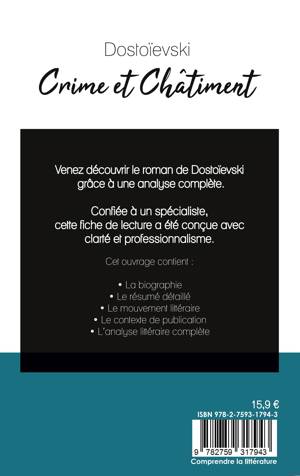 Venez découvrir Crime et Châtiment de Dostoïevski grâce à une analyse littéraire de référence ! Confiée à un spécialiste, cette fiche de lecture a été conçue avec clarté et professionnalisme. Cet ouvrage contient la biographie de l'écrivain, le résumé détaillé, le mouvement littéraire, le contexte de publication de l'oeuvre et l'analyse complète. Retrouvez tous nos titres sur : www.fichedelecture.fr.