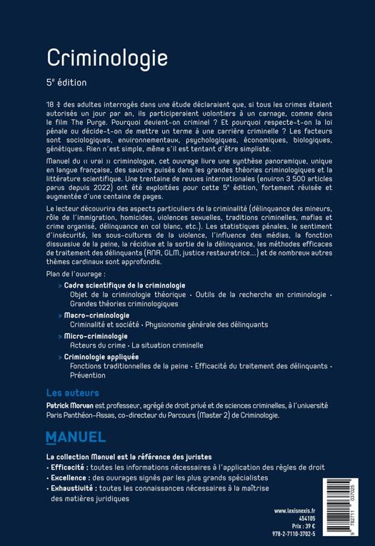 Manuel du « vrai » criminologue, cet ouvrage livre une synthèse panoramique, unique en langue française, des savoirs puisés dans les grandes théories criminologiques et la littérature scientifique (une vingtaine de revues internationales ont été exploitées jusqu'en 2022 pour cette 4e édition).