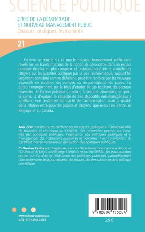 Ce livre se penche sur ce que le nouveau management public nous révèle sur les transformations de la notion de démocratie dans un espace politique de plus en plus complexe et technocratique, où le contrôle des citoyens sur les autorités publiques par la voie représentative, aujourd'hui largement considéré comme défaillant, peut être renforcé par les nouveaux dispositifs de reddition des comptes ou de participation du public.