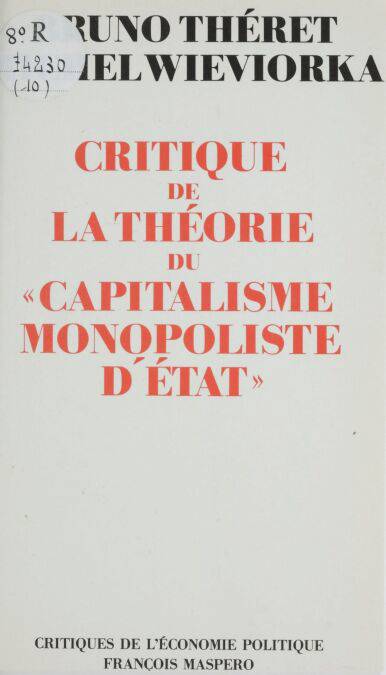 Ce livre a un objet précis, la mise en cause de ce qui, dans le discours politique et scientifique du Parti communiste français, se veut l'expression théorique la plus avancée, la seule pertinente et authentiquement marxiste, rendant compte des réalités du capitalisme contemporain, la théorie du capitalisme monopoliste d'État : mise en cause de la logique interne de cette théorie, à travers les développements qu'elle connaît dans la littérature émanant du P.C.F. ; mise en cause, à l'aide de documents statistiques récents, de son adéquation à la réalité dont elle prétend rendre compte ; mise en cause, puisque la référence aux pères fondateurs du marxisme est explicite et constamment affichée, de sa compatibilité avec les écrits de Marx sur lesquels elle affirme se fonder ; mise en cause, enfin, de la conception qu'elle développe d'un État fonctionnant sur le mode de la dévalorisation du capital au profit des monopoles. La critique de la théorie du C.M.E. s'accompagne de propositions positives qui posent, à propos de la fiscalité ou de l'épargne, quelques jalons pour une analyse originale de l'intervention économique de l'État. Elle se dégage, en conclusion, du terrain économique sur lequel se situent les tenants du C.M.E. pour s'interroger sur le projet politique et la conception de l'État qui sous-tendent ladite théorie.
