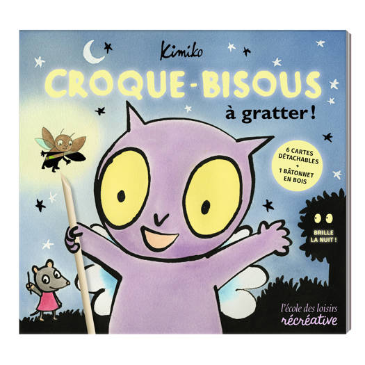 6 Cartes détachables phosphorescentes à gratter, pour développer sa motricité fine dans le calme et la douceur de l'univers de Croque-bisous.