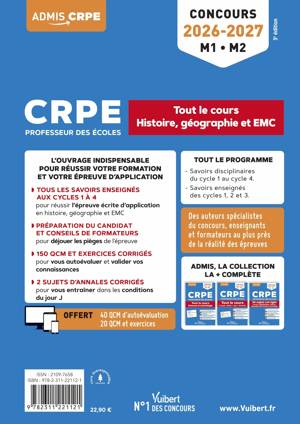 Tout le nécessaire pour préparer l'option « Histoire-Géographie-EMC » du CRPE 2026-2027 dans un seul ouvrage :