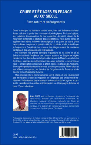 Crues, étiages, hautes et basses eaux sont des événements statistiques calculés à partir des chroniques hydrologiques. Or leurs variations interannuelles devraient relever de la répartition temporelle et spatiale des précipitations. Sur la quasi-totalité du XXe siècle, une méthode d'investiguation a révélé qu'en France la fréquence et l'amplitude des crues et des étiages étaient dominées par l'impact des aménagements hydrauliques. D'autres interventions humaines sont également à retenir.