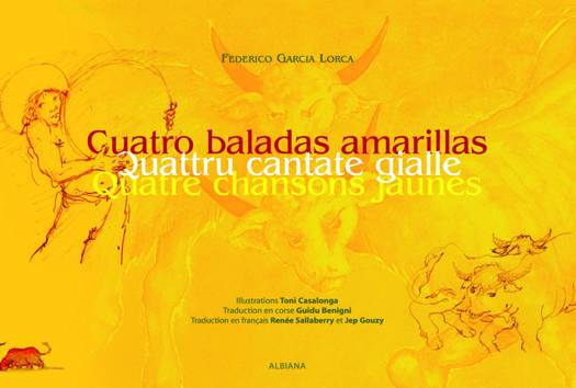 En 1936, Lorca publie dans ses Primeras Canciones, quatre petites chansons légères qui disent la terre, les hommes, les couleurs et les climats de l’Espagne rurale.Tonì Casalonga, artiste peintre parmi les plus importants de l’île, propose une œuvre picturale autour des Cuatro baladas amarillas. Pâtres, bœufs, araires, arbres dessinent une mythologie agreste, jaune profond, intemporelle, universelle.