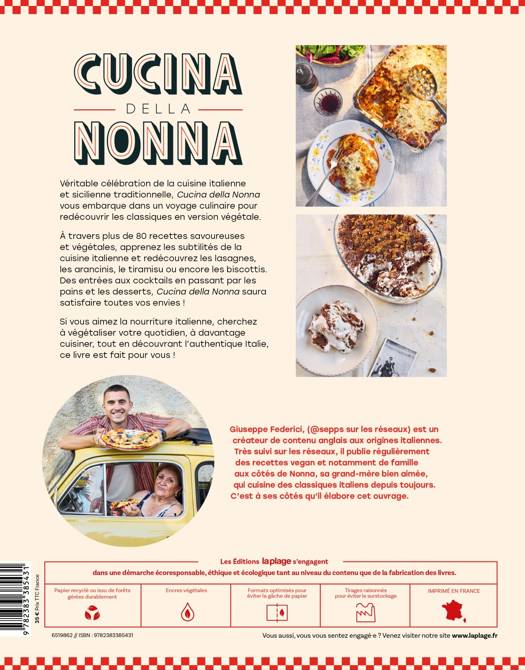 Véritable célébration de la cuisine italienne et sicilienne traditionnelle, Cucina della Nonna vous embarque dans un voyage culinaire pour redécouvrir les classiques en version végétale. À travers plus de 80 recettes savoureuses et végétales, apprenez les subtilités de la cuisine italienne et redécouvrez les lasagnes, les arancinis, le tiramisu ou encore les biscottis. Des entrées aux cocktails en passant par les pains et les desserts, Cucina della Nonna saura satisfaire toutes vos envies ! Si vous aimez la nourriture italienne, cherchez à végétaliser votre quotidien, à davantage cuisiner, tout en découvrant l’authentique Italie, ce livre est fait pour vous !