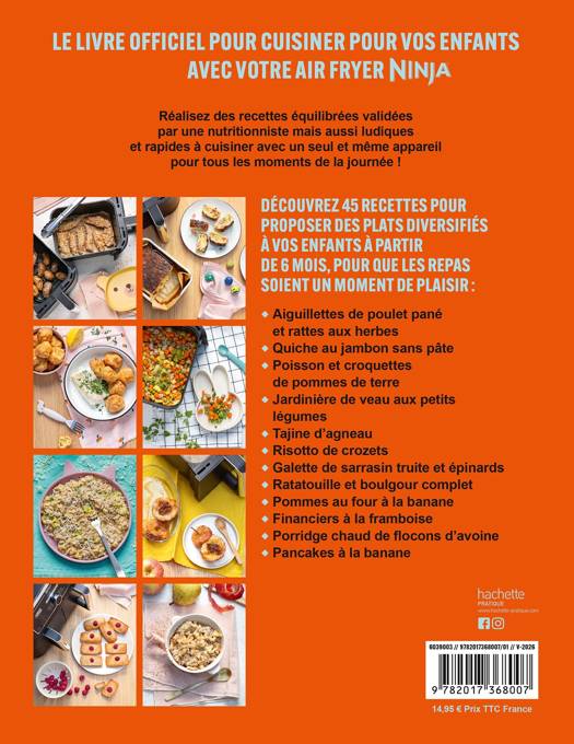 LE LIVRE OFFICIEL POUR CUISINER POUR VOS ENFANTS AVEC VOTRE AIR FRYER NINJARéalisez des recettes équilibrées validées par une nutritionniste mais aussi ludiques et rapides à cuisiner avec un seul et même appareil pour tous les moments de la journée !