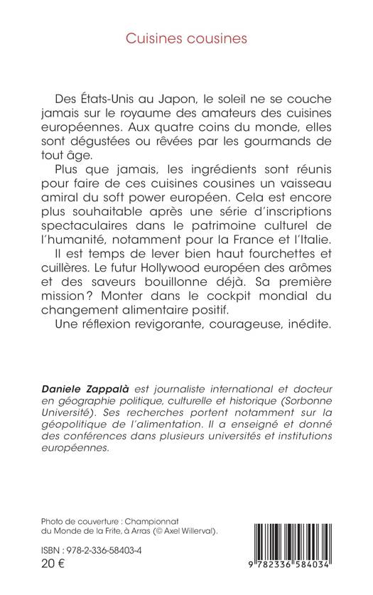 Des États-Unis au Japon, le soleil ne se couche jamais sur le royaume des amateurs des cuisines européennes. Aux quatre coins du monde, elles sont dégustées ou rêvées par les gourmands de tout âge. Plus que jamais, les ingrédients sont réunis pour faire de ces cuisines cousines un vaisseau amiral du soft power européen. Cela est encore plus souhaitable après une série d'inscriptions spectaculaires dans le patrimoine culturel de l'humanité, notamment pour la France et l'Italie. Il est temps de lever bien haut fourchettes et cuillères. Le futur Hollywood européen des arômes et des saveurs bouillonne déjà. Sa première mission? Monter dans le cockpit mondial du changement alimentaire positif. Une réflexion revigorante, courageuse, inédite.