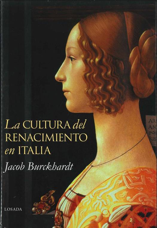 La cultura del Renacimiento en Italia, del eminente historiador suizo Jacob Burckhardt, tiene renombre de obra clásica. Cuando apareció en 1860, resultó revolucionaria: nunca se había intentado, en tan gran escala, una descripción tan completa de una época todavía reciente de la civilización, prescindiendo de la narración histórica desarrollada cronológicamente. La obra estaba construida con enorme acopio de datos y de lecturas, pero lo que le dio carácter eminente fue la intuición del autor, que supo elegir y destacar los caracteres esenciales de aquella época que es el punto de partida de lo que llamamos civilización moderna. Investigaciones posteriores a las de Burckhardt han ampliado nuestros conocimientos pormenorizados sobre el Renacimiento italiano, y sobre el tema se han escrito muchos trabajos de gran extensión, pero no es posible superar la visión profunda de este autor.Burckhardt describe y caracteriza, con imaginación vivaz y con penetración realmente filosófica, la vida