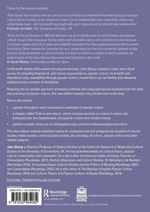 In this tenth edition of his award-winning introduction, John Storey presents a clear and critical survey of competing theories of, and various approaches to, popular culture. Its breadth and theoretical unity, exemplified through popular culture, means that it can be flexibly and relevantly applied across a number of disciplines.