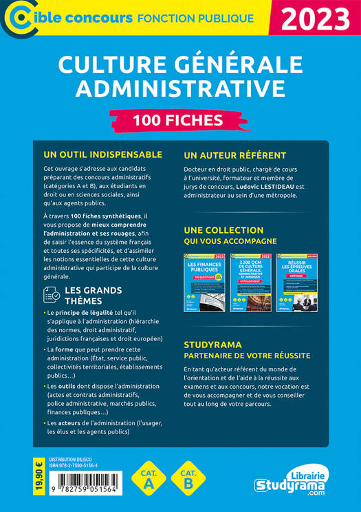 Ce livre se décompose en quatre points essentiels : • le principe de légalité tel qu’il s’applique à l’administration (la hiérarchie des normes, le droit administratif, les juridictions françaises et le droit européen), • la forme que peut prendre cette administration (État, service public, collectivités territoriales, établissements publics…), • les outils dont dispose l’administration (actes et contrats administratifs, police administrative, marchés publics, finances publiques…), • les acteurs de l’administration (l’usager, les élus et les agents publics que sont les fonctionnaires et les agents contractuels). Il constitue un outil indispensable pour préparer les épreuves écrites et orales des concours de la fonction publique.