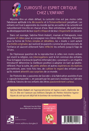 Réputée être un vilain défaut, la curiosité n’en est pas moins cette fabuleuse aptitude à la découverte et à l’émerveillement perpétuel. Les enfants ont tout à apprendre du monde qui les accueille et la curiosité est naturellement inscrite en chacun d’eux. Bien entretenue, elle participera au développement de leur esprit critique et de leur citoyenneté en devenir. Dans cet ouvrage, Sabrina Féret-Hubert, maman et thérapeute, nous propose 45 idées pour les accompagner. Présentés sous la forme de fiches simples et détaillées, les « éveils » sont autant d’activités originales qui raviront les parents comme les professionnels de l’enfance et sauront utilement faire réfléchir les enfants jusqu’à l’âge de 10 ans. Les interrogations sont le lot commun des enfants. Pour échapper à la boucle (parfois infernale) des « pourquoi », un chapitre introductif détermine la meilleure position à adopter en tant qu’adulte-référent. Faisons de nos enfants des êtres passionnément curieux.