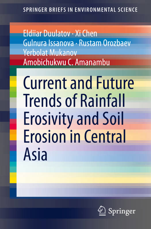 This book analyses climate change influences on rainfall erosivity and soil erosion across Central Asia, provides an overview (past and projections) on the Central Asian countries where projected changes in rainfall erosivity and erosivity density are the greatest, and discusses the potential impacts on the environment across the region. This analysis is accomplished primarily using the RUSLE model with past and future climate projections, spatiotemporal variations of rainfall erosivity and soil erosion based on WorldClim, and Coupled Model Intercomparison Project Phase 5 (CMIP5) climate models (for Central Asia and separately Kazakhstan). The relationship between precipitation characteristics and erosion has been well established, but spatial and temporal projections of future rainfall erosivity in a changing climate in Central Asia have not been published significantly. Therefore, assessing rainfall erosivity and its consequences can assist specialists andresearchers in achieving the best practices for soil conservation. The result of this type of research is all-encompassing, and may reflect normal variations in other parts of the world (for example, the arid and semi-arid regions) and is inherently limited to the Central Asian region.