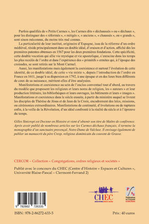 Issu d’une thèse de doctorat, l’ouvrage retrace l’histoire des carmes déchaux en France, de leur introduction en 1611 jusqu’à leur dispersion après la Révolution française. L'intérêt de cet ordre est qu'il avait la spécificité de proposer un double idéal, d’oraison et d’action, alliant ainsi vie mystique et vie apostolique. Avec un CD-ROM contenant des documents annexes.