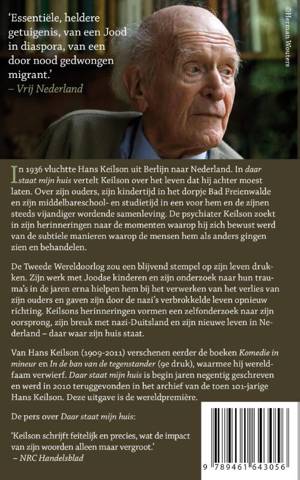 In 1936 vluchtte Hans Keilson uit Berlijn naar Nederland. In DAAR STAAT MIJN HUIS vertelt Keilson over het leven dat hij achter moest laten. Over zijn ouders, zijn kindertijd in het dorpje Bad Freienwalde en zijn middelbareschool- en studietijd in een voor hem en de zijnen steeds vijandiger wordende samenleving. De psychiater Keilson zoekt in zijn herinneringen naar de momenten waarop hij zich bewust werd van de subtiele manieren waarop de mensen hem als anders gingen zien en behandelen.