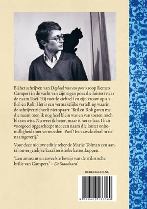 Bij het schrijven van het geestige Dagboek van een poes kroop Remco Campert in de vacht van zijn eigen poes, die luistert naar de naam Poef. Hij voerde zichzelf en zijn vrouw op als Rok en Bril. Het is een vermakelijke vertelling waarin de schrijver zichzelf niet spaart: ‘Bril en Rok gaven me die naam toen ik nog heel klein was en van toeten noch blazen wist. Nu weet ik beter, maar is het te laat. Ik zit voorgoed opgescheept met een naam die louter onbenulligheid doet vermoeden. Poef! Een zwaktebod in de naamgeverij.’