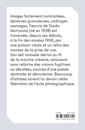 L'oeuvre photographique, les écrits, la radicalité de sa démarche font de Daido Moriyama (né à Osaka en 1938) un des chefs de file du renouvellement international du langage photographique à partir des années 1970. Son esthétique de l'instantané, son refus absolu des conventions de la prise de vue (il affirme "prendre ses photographies plus avec le corps qu'avec les yeux"), sa volonté de penser et de vivre la photographie comme une expérience intime, ont ouvert des champs nouveaux, jusqu'alors presque inédits, et suscité une forme de libération de l'acte photographique.