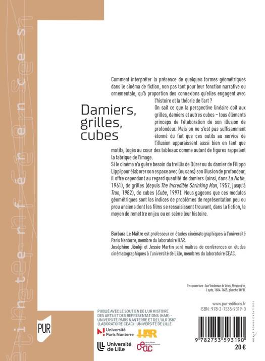 Si le cinéma n’a guère besoin du treillis de Dürer ou du damier de Filippo Lippi pour élaborer son espace avec (ou sans) son illusion de profondeur, il offre cependant au regard quantité de damiers (ainsi, dans La Notte, 1961), de grilles (depuis The Incredible Shrinking Man, 1957, jusqu’à Tron, 1982), de cubes (Cube, 1997). Nous gageons que ces modules géométriques sont les indices de problèmes de représentation peu ou prou anciens dont les films se ressaisissent trouvant, dans la fiction, le moyen de remettre en jeu ou en scène leur histoire.