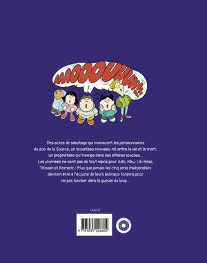 Des actes de sabotage qui menacent les pensionnaires du zoo de la Source, un louveteau nouveau-né entre la vie et la mort, un propriétaire qui trempe dans des affaires louches... Les journées ne sont pas de tout repos pour Ashi, Kiku, Lili-Rose, Titouan et Romaric ! Plus que jamais les cinq amis inséparables devront être à l'écoute de leurs animaux totems pour ne pas tomber dans la gueule du loup...