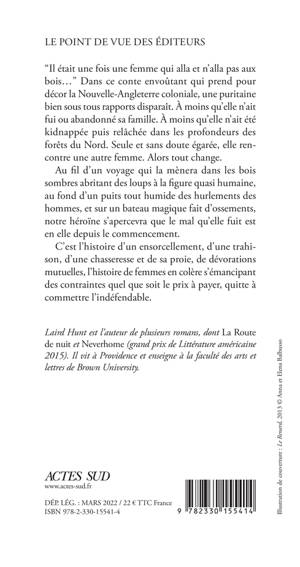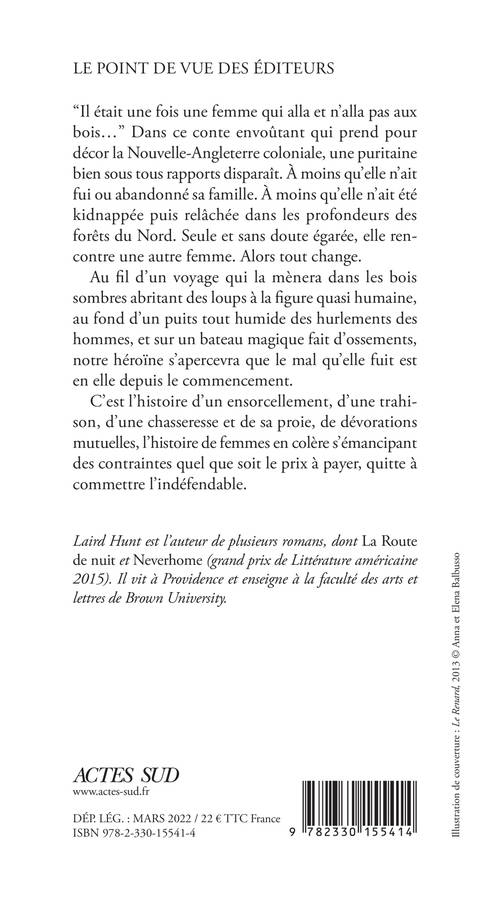 Dans ce conte envoûtant qui prend pour décor la Nouvelle-Angleterre coloniale, une puritaine bien sous tous rapports disparaît. À moins qu'elle n'ait fui ou abandonné sa famille. À moins qu'elle n'ait été kidnappée puis relâchée dans les profondeurs des forêts du Nord. Seule et sans doute égarée, elle rencontre une autre femme. Alors tout change. Au fil d'un voyage qui la mènera dans les bois sombres abritant des loups à la figure quasi humaine, au fond d'un puits tout humide des hurlements des hommes, et sur un bateau magique fait d'ossements, notre héroïne s'apercevra que le mal qu'elle fuit est en elle depuis le commencement. C'est l'histoire d'un ensorcellement, d'une trahison, d'une chasseresse et de sa proie, de dévorations mutuelles, l'histoire de femmes en colère s'émancipant des contraintes quel que soit le prix à payer, quitte à commettre l'indéfendable.