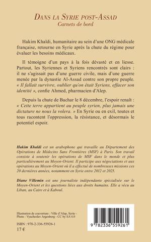 Hakim Khaldi, humanitaire au sein d'une ONG médicale française, retourne en Syrie après la chute du régime pour évaluer les besoins médicaux. Il témoigne d'un pays à la fois dévasté et en liesse. Partout, les Syriennes et Syriens rencontrés sont clairs: il ne s'agissait pas d'une guerre civile, mais d'une guerre menée par la dynastie Al-Assad contre son propre peuple. Il fallait survivre, oublier qu'on était Syriens, effacer son identité, confie Ahmed, pharmacien d'Alep. Depuis la chute de Bachar le 8 décembre, l'espoir renaît: Cette terre appartient au peuple syrien, plus jamais une dictature ne nous la volera. En Syrie ou en exil, toutes et tous racontent l'oppression, la résistance, et désormais le potentiel espoir.