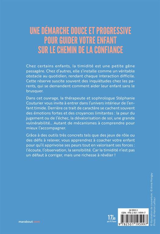 Dans cet ouvrage, la thérapeute et sophrologue Stéphanie Couturier vous invite à entrer dans l'univers intérieur de l'enfant timide. Derrière ce trait de caractère se cachent souvent des émotions fortes et des croyances limitantes : la peur du jugement ou de l'échec, la dévalorisation de soi, une grande vulnérabilité... Autant de mécanismes à comprendre pour mieux l'accompagner.
