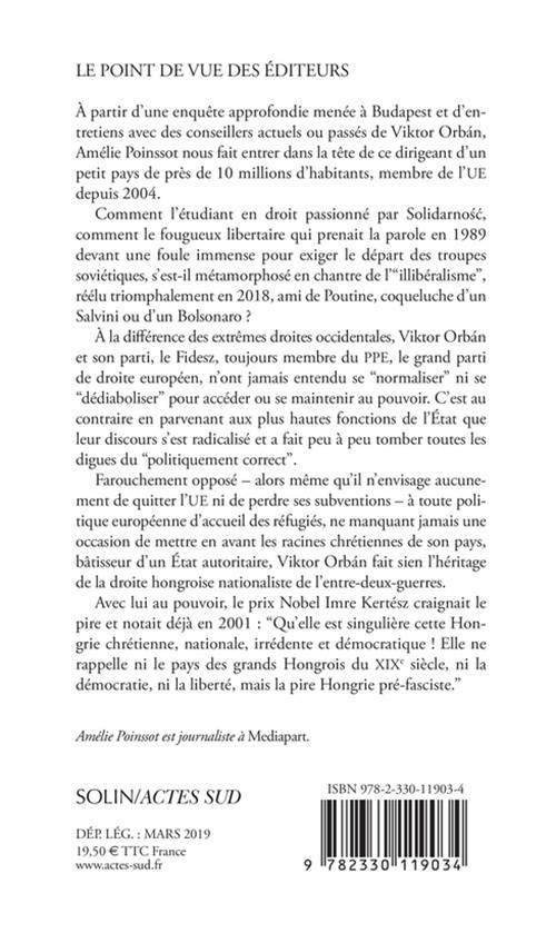 À partir d'une enquête approfondie menée à Budapest et d'entretiens avec des conseillers actuels ou passés de Viktor Orbán, Amélie Poinssot nous fait entrer dans la tête de ce dirigeant d'un petit pays de près de 10 millions d'habitants, membre de l'UE depuis 2004. Comment l'étudiant en droit passionné par Solidarność, comment le fougueux libertaire qui prenait la parole en 1989 devant une foule immense pour exiger le départ des troupes soviétiques, s'est-il métamorphosé en chantre de l'"illibéralisme", réélu triomphalement en 2018, ami de Poutine, coqueluche d'un Salvini ou d'un Bolsonaro ? À la différence des extrêmes droites occidentales, Viktor Orbán et son parti, le Fidesz, toujours membre du PPE, le grand parti de droite européen, n'ont jamais entendu se "normaliser" ni se "dédiaboliser" pour accéder ou se maintenir au pouvoir. C'est au contraire en parvenant aux plus hautes fonctions de l'État que leur discours s'est radicalisé et a fait peu à peu tomber toutes les digues du "politiquement correct". Farouchement opposé - alors même qu'il n'envisage aucunement de quitter l'UE ni de perdre ses subventions - à toute politique européenne d'accueil des réfugiés, ne manquant jamais une occasion de mettre en avant les racines chrétiennes de son pays, bâtisseur d'un État autoritaire, Viktor Orbán fait sien l'héritage de la droite hongroise nationaliste de l'entre-deux-guerres. Avec lui au pouvoir, le prix Nobel Imre Kertész craignait le pire et notait déjà en 2001 : "Qu'elle est singulière cette Hongrie chrétienne, nationale, irrédente et démocratique ! Elle ne rappelle ni le pays des grands Hongrois du XIXe siècle, ni la démocratie, ni la liberté, mais la pire Hongrie pré-fasciste."