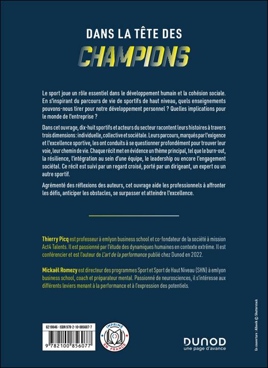 Dans cet ouvrage, dix-huit sportifs et acteurs du secteur racontent leurs histoires à travers trois dimensions : individuelle, collective et sociétale. Leurs parcours, marqués par l'exigence et l'excellence sportive, les ont conduits à se questionner profondément pour trouver leur voie, leur chemin de vie. Chaque récit met en évidence un thème principal, tel que le burn-out, la résilience, l’intégration au sein d’une équipe, le leadership ou encore l’engagement sociétal. Ce récit est suivi par un regard croisé, porté par un dirigeant, un expert ou un autre sportif.
