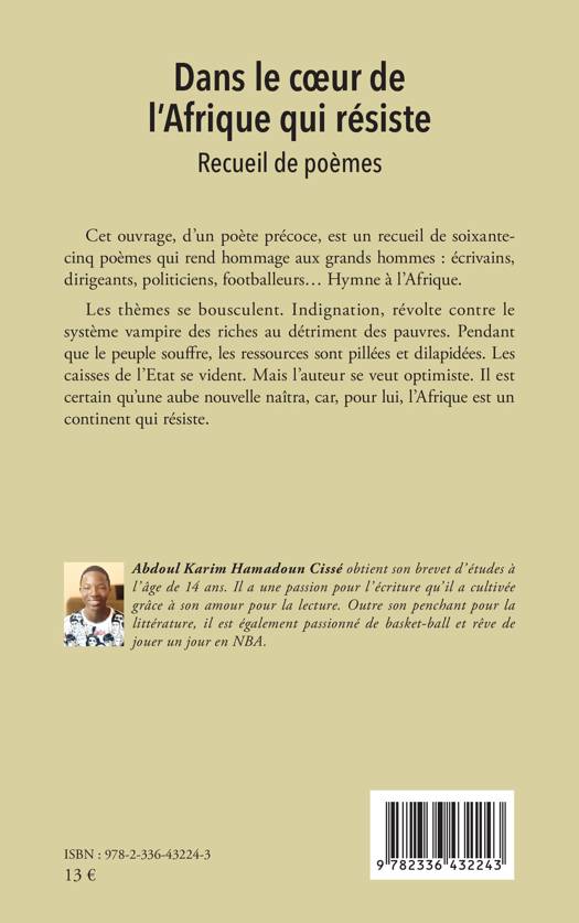 Cet ouvrage, d'un poète précoce, est un recueil de soixante-cinq poèmes qui rend hommage aux grands hommes écrivains, dirigeants, politiciens, footballeurs... Hymne à l'Afrique. Les thèmes se bousculent. Indignation, révolte contre le système vampire des riches au détriment des pauvres. Pendant que le peuple souffre, les ressources sont pillées et dilapidées. Les caisses de l'état se vident. Mais l'auteur se veut optimiste. Il est certain qu'une aube nouvelle naîtra, car, pour lui, l'Afrique est un continent qui résiste.