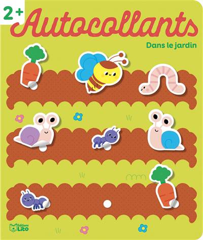 Sept scènes sur le thème du jardin à compléter avec des autocollants : fleurs, abeilles, pommes, entre autres. Des points blancs permettent à l'enfant d'occuper correctement l'espace de la page.