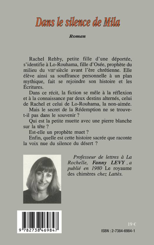 Rachel Rehby, petite fille d'une déportée, s'identifie à Lo-Rouhama, fille d'Osée, prophète du milieu du VIIIème siècle avant l'ère chrétienne. Elle élève ainsi sa souffrance personnelle à un plan mythique, fait se rejoindre son histoire et les Ecritures. Dans ce récit, la fiction se mêle à la réflexion et à la connaissance par deux destins alternés, celui de Rachel et celui de Lo-Rouhama, la non-aimée.
