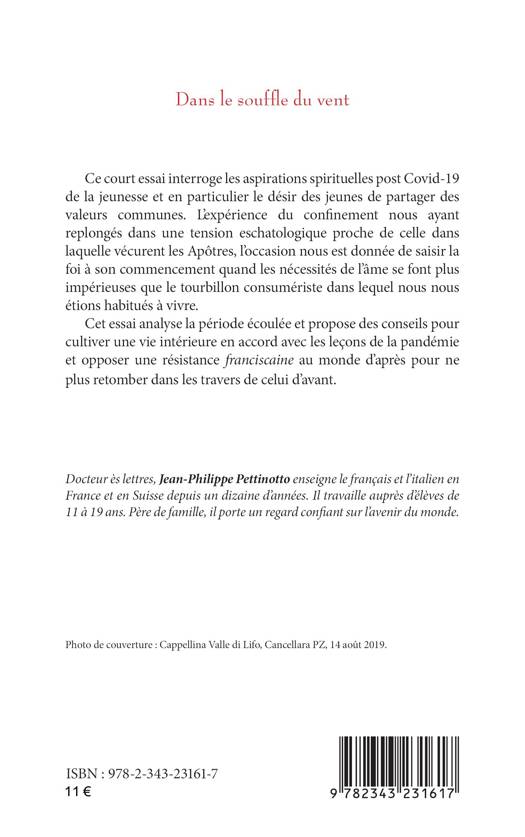 Cet ouvrage interroge les aspirations spirituelles post Covid-19 de la jeunesse et en particulier le désir des jeunes de partager des valeurs communes. L'expérience du confinement nous ayant replongés dans une tension eschatologique proche de celle dans laquelle vécurent les Apôtres, l'occasion nous est donnée de saisir la foi à son commencement quand les nécessités de l'âme se font plus impérieuses que le tourbillon consumériste dans lequel nous nous étions habitués à vivre. Cet essai analyse la période écoulée et propose des conseils pour cultiver une vie intérieure en accord avec les leçons de la pandémie et opposer une résistance franciscaine au monde d'après pour ne plus retomber dans les travers de celui d'avant.