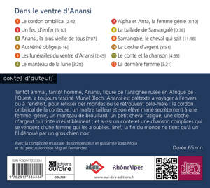 Tantôt animal, tantôt homme, Anansi, figure de l'araignée rusée en Afrique de l'Ouest, a toujours fasciné Muriel Bloch. Anansi est prétexte à voyager à l'envers ou à l'endroit, pour retisser des mondes où se retrouvent pêle-mêle : le cordon ombilical de la conteuse, un maître tailleur et son élève marié secrètement à une femme-génie, un manteau de brouillard, un petit cheval fatigué, une cloche d'argent qui tinte irrésistiblement ; et aussi un conte et une chanson complices qui se vengent d'une femme qui les a oubliés. Bref, la fin du monde ne tient qu'à un fil dénoué par un gros chien noir.
