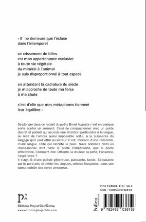 Se plonger dans ce recueil du poète Bonel Auguste c’est en quelque sorte sceller un serment. Celui de compagnonner avec un poète discret et patient qui accorde une attention particulière à la langue, au récit de l’amour aussi impossible soit-il, à la puissance du langage qu’il veut offrir au lecteur. C’est l’histoire d’une rencontre, d’une langue, celle qui raconte la plaie. Nous sommes dans un chaos-monde dont parle le poète Frankétienne, que Bonel Auguste affectionne. Comment dire l’attente, la douleur, la perte, l’absence, l’espérance ? <br /> Il s’agit là d’une poésie généreuse, puissante, lucide. Séduisante par le parti pris de mêler les langues, créoles-françaises.<br /> Sa poésie se veut une forme sens. Elle dit l’angoisse existentielle, questionne l’espace, le temps, la mort, l’éternité, évoque aussi la mémoire, la blessure de l’histoire, le sens du monde, la sensualité subtile des corps amoureux.<br />
