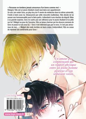 Résigné, Yûto est un jeune étudiant vivant seul dans son appartement. Un soir, son voisin Sora, un play-boy de 4e année de médecine dans la même université, l'invite à boire avec lui. Désarçonné par cette rencontre inattendue, Yûto décide de lui avouer son homosexualité pour le faire partir, s'attendant à une réaction de dégoût. Mais à sa grande surprise, Sora ne cache pas son attirance pour le jeune étudiant et se jette sur lui !! Malgré sa peur de l'inconnu, Yûto se laisse charmer par les douces caresses de Sora et passe la nuit avec lui. " Sora n'est intéressé que par le sexe, il n'est pas amoureux de moi... " Malgré des nuits torrides où leurs corps s'entremêlent, Yûto ne cesse de réprimer ses sentiments pour Sora !