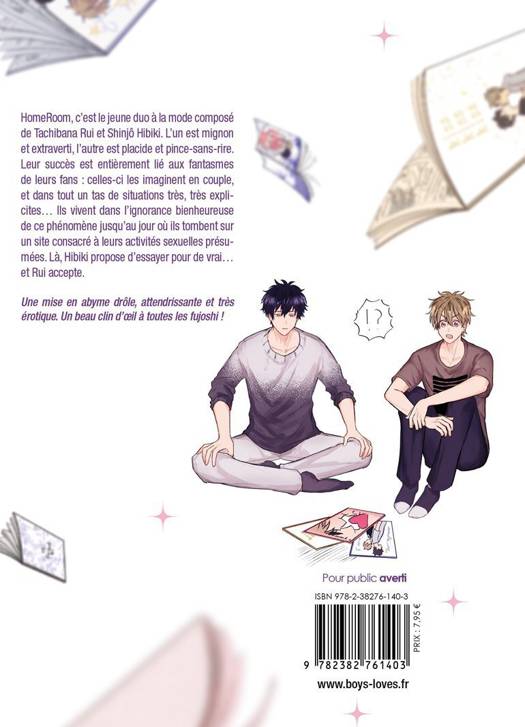 HomeRoom, c'est le jeune duo à la mode composé de Tachibana Rui et Shinjô Hibiki. L'un est mignon et extraverti, l'autre est placide et pince-sans-rire. Leur succès est entièrement lié aux fantasmes de leurs fans : celles-ci les imaginent en couple, et dans tout un tas de situations très, très explicites... Ils vivent dans l'ignorance bienheureuse de ce phénomène jusqu'au jour où ils tombent sur un site consacré à leurs activités sexuelles présumées. Là, Hibiki propose d'essayer pour de vrai... et Rui accepte.