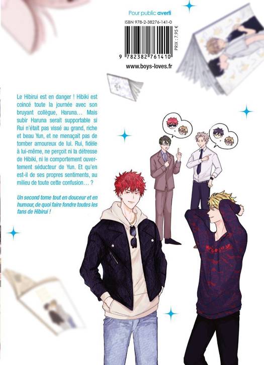 Le Hibirui est en danger ! Hibiki est coincé toute la journée avec son bruyant collègue, Haruna... Mais subir Haruna serait supportable si Rui n'était pas vissé au grand, riche et beau Yun, et ne menaçait pas de tomber amoureux de lui. Rui, fidèle à lui-même, ne perçoit ni la détresse de Hibiki, ni le comportement ouvertement séducteur de Yun. Et qu'en est-il de ses propres sentiments, au milieu de toute cette confusion... ?