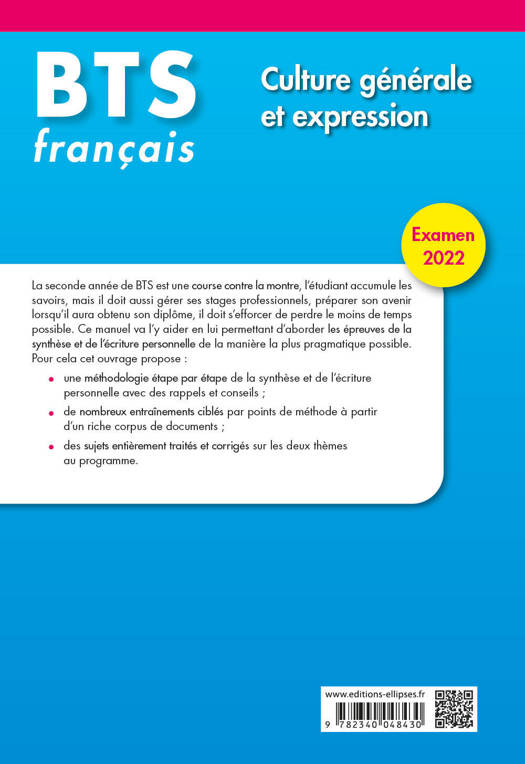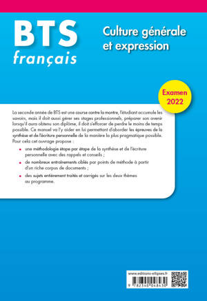 La seconde année de BTS est une course contre la montre, l’étudiant accumule les savoirs, mais il doit aussi gérer ses stages professionnels, préparer son avenir lorsqu’il aura obtenu son diplôme, il doit s’efforcer de perdre le moins de temps possible. Ce manuel va l’y aider en lui permettant d’aborder les épreuves de la synthèse et de l’écriture personnelle de la manière la plus pragmatique possible. Pour cela cet ouvrage propose :