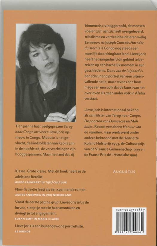 'Dans van de luipaard' van Lieve joris is een schrijnend portret van een uiteenvallende natie, maar tevens een hommage aan een volk dat de kunst van het overleven als geen ander volk in Afrika verstaat. Tien jaar na haar veelgeprezen boek 'Terug naar Congo' arriveert Joris opnieuw in Congo. Mobutu is net gevlucht, de kindsoldaten van Kabila zijn in de hoofdstad, de verwachtingen zijn hooggespannen. Maar het land dat zij binnenreist is leeggeroofd, de mensen voelen zich aan zichzelf overgeleverd, tribalisme en verdeeldheid tieren welig. Een eeuw na Joseph Conrads' 'Hart der duisternis' is Congo nog steeds een moeilijk doordringbaar land. Lieve Joris heeft het aangedurfd dit gebied te bereizen op een hachelijk moment in zijn geschiedenis.