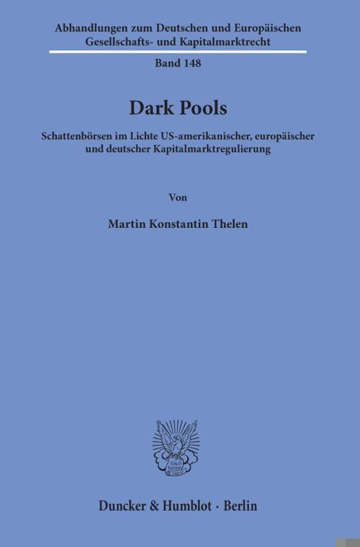 Dark Pools sind auaerborsliche Handelsplattformen fur Finanzinstrumente. Im Gegensatz zu Borsen herrscht dort kaum oder gar keine Transparenz. Die Nutzung eines Dark Pool ist vor allem fur Investoren mit einer groaen Order, sog. Blockhandler, interessant: Indem die Blockorder dem Markt nicht bekannt gegeben wird, konnen andere Marktteilnehmer nicht strategisch darauf reagieren und den Ausfuhrungspreis beeinflussen. Allerdings werden Dark Pools zunehmend auch fur die Ausfuhrung kleiner Ordern genutzt. Zugleich handeln viele Betreiber selbst in ihrem System mit. Basierend auf einer umfangreichen rechtsokonomischen Analyse widmet sich die Arbeit im rechtsvergleichenden Pendelblick den neuen Regulierungsvorgaben im US-amerikanischen und europaischen Kapitalmarktrecht. Dies betrifft namentlich die Neufassung der Handelsplatzkategorien, die Verscharfung der Transparenzvorgaben und die zahlreichen Verhaltenspflichten fur Betreiber und Nutzer von Dark Pools.