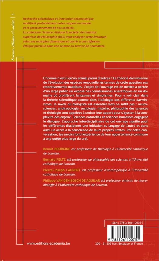 Le volume rassemble des études traitant de la question de la spécificité humaine telle qu'elle se pose au vu de la théorie darwinienne de l'évolution des espèces. Biologie, neurosciences, anthropologie, sociologie, histoire, philosophie des sciences et théologie croisent leur apport pour s'ajuster à la complexité des enjeux. En abordant les aspects scientifiques de la question conjointement à leurs retentissements au plan de la signification, l'ouvrage offre une perspective nouvelle à l'un des points de friction les plus sérieux entre la science et la société.
