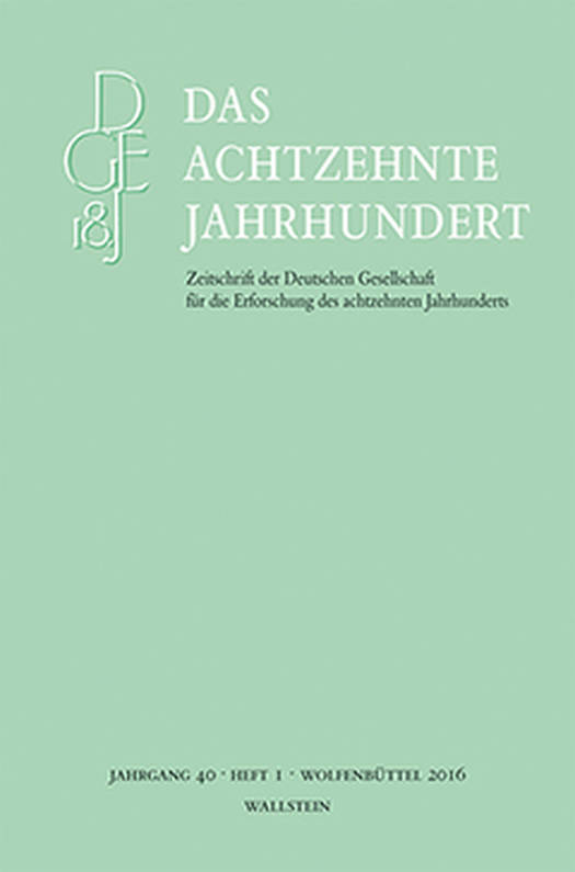 Das achtzehnte Jahrhundert« wurde 1977 als Mitteilungsblatt der »Deutschen Gesellschaft für die Erforschung des achtzehnten Jahrhunderts« (DGEJ 18. J) gegründet und erscheint seit 1987 als wissenschaftliche Zeitschrift.Die Zeitschrift erscheint halbjährlich und ist im Aufsatzteil im Wechsel aktuellen Themen gewidmet oder frei konzipiert. Im Rezensionsteil legt sie Wert auf aktuelle Besprechungen zu einem weit gefächerten Spektrum von thematisch repräsentativen und methodologisch aufschlussreichen Fachpublikationen. Entsprechend der interdisziplinären Ausrichtung der DGEJ enthält sie Beiträge aus allen Fachrichtungen.