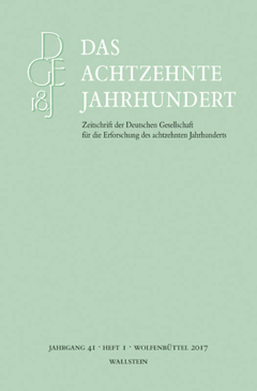 »Das achtzehnte Jahrhundert« wurde 1977 als Mitteilungsblatt der »Deutschen Gesellschaft für die Erforschung des achtzehnten Jahrhunderts« (DGEJ 18. J) gegründet und erscheint seit 1987 als wissenschaftliche Zeitschrift.Die Zeitschrift erscheint halbjährlich und ist im Aufsatzteil im Wechsel aktuellen Themen gewidmet oder frei konzipiert. Im Rezensionsteil legt sie Wert auf aktuelle Besprechungen zu einem weit gefächerten Spektrum von thematisch repräsentativen und methodologisch aufschlussreichen Fachpublikationen. Entsprechend der interdisziplinären Ausrichtung der DGEJ enthält sie Beiträge aus allen Fachrichtungen.