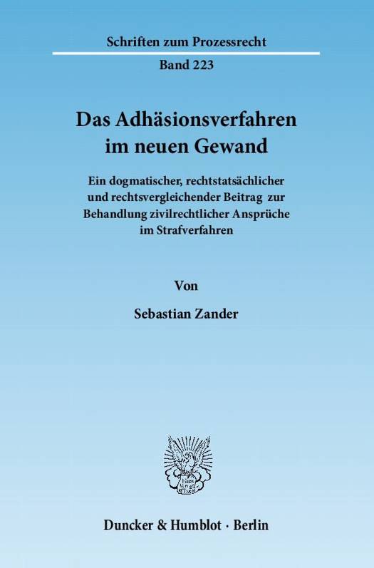 Mit dem Adhäsionsverfahren ist es so eine Sache. In der Rechtspraxis konnte es bislang keine große Bedeutung erlangen. Dagegen wird es in der reichhaltigen Literatur überwiegend positiv beurteilt. Der Gesetzgeber hat das Verfahren durch das Zweite Opferrechtsreformgesetz zuletzt im Jahr 2004 umfassend neu gestaltet. Ziel dieser Veränderungen war es, dem Adhäsionsverfahren eine größere praktische Bedeutung zu verleihen und es zu einem zentralen Element des Opferschutzes zu machen. Etwas mehr als fünf Jahre nach dieser Reform ist Zeit für eine Zwischenbilanz: Konnte die Bedeutung des Verfahrens tatsächlich gesteigert werden? Haben sich die veränderten Regelungen bewährt? Wie wird die Rolle des Adhäsionsverfahrens aus praktischer Sicht beurteilt? Welche Impulse können durch einen Blick auf ausländische Rechtsordnungen für das Verfahren erlangt werden? An welchen Stellen besteht noch Regelungsbedarf? Diese Fragestellungen beantwortet Sebastian Zander. Er stellt die Grundlagen des Adhäsionsverfahrens und seine rechtliche Ausgestaltung nach der Reform dar. Der empirische Teil der Arbeit zeigt die Ergebnisse einer Onlineumfrage, die der Autor bundesweit unter Strafrichtern durchgeführt hat. Im rechtsvergleichenden Teil analysiert Zander, wie Österreich und die Schweiz mit Problemstellungen umgehen, die mit dem Adhäsionsverfahren vergleichbar sind. Ergänzt werden die rechtsvergleichenden Ausführungen mit einem Überblick über die damalige Rechtslage in der DDR. Ausgehend von dieser Bestandsaufnahme setzt sich der Autor mit der Frage auseinander, welche Stellung im Strafverfahren und welche Funktion dem Adhäsionsverfahren zukommen. Die Darstellung und Bewertung unterschiedlicher Reformvorschläge rundet die Arbeit ab.